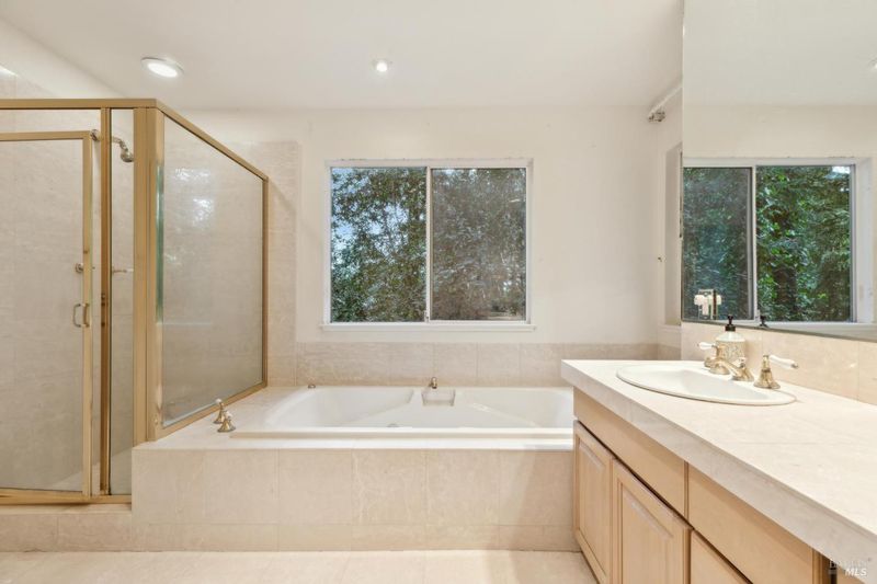 - Double Sinks, Shower Stall(s), Tub, Walk-In Closet