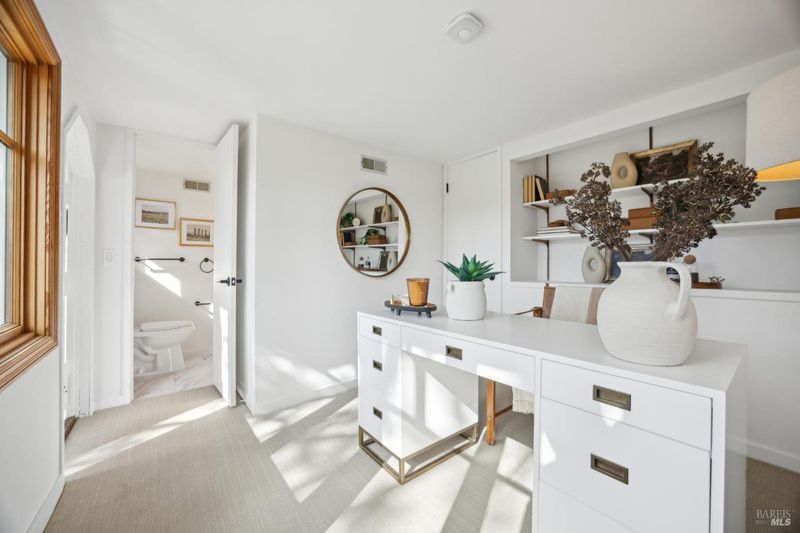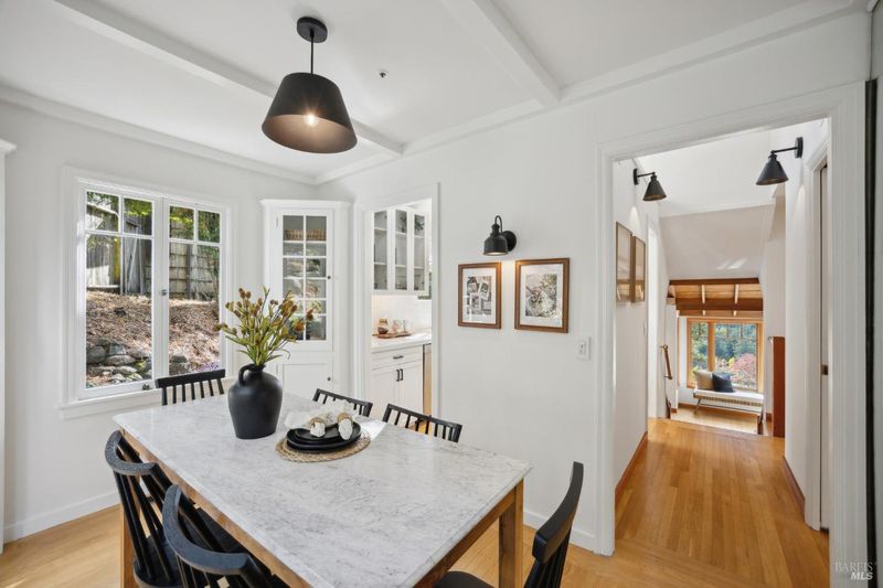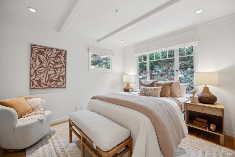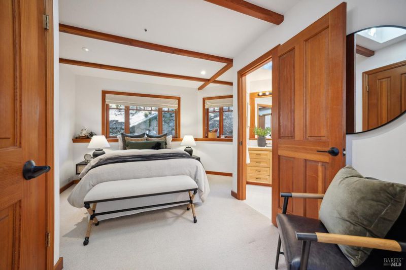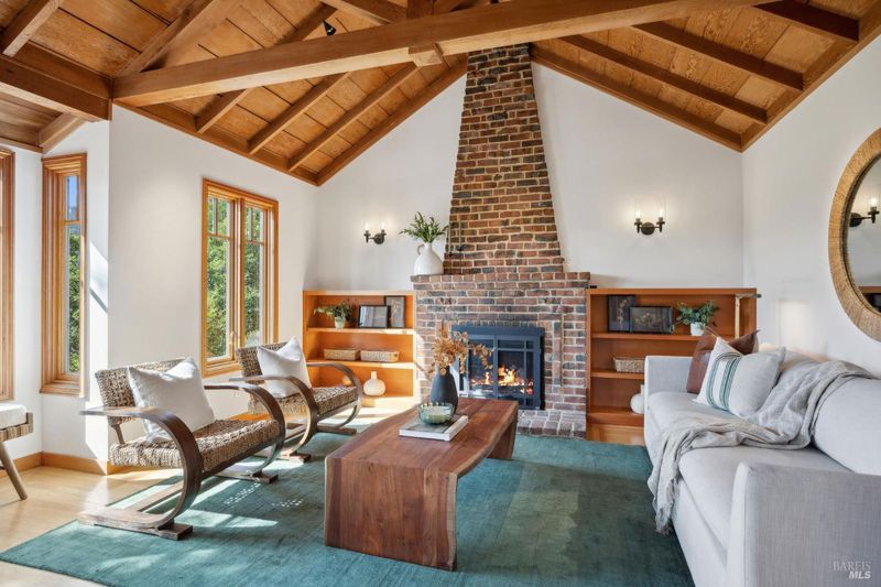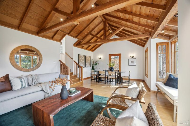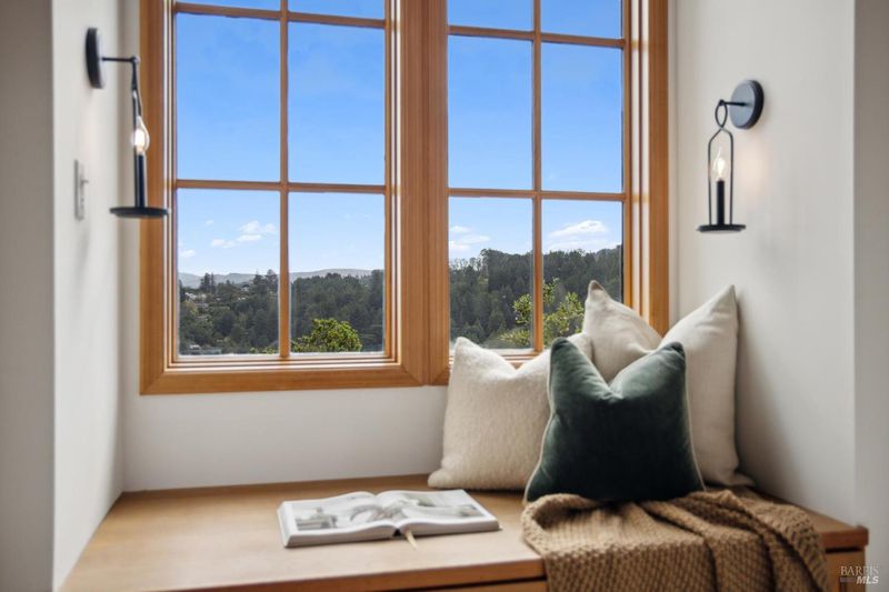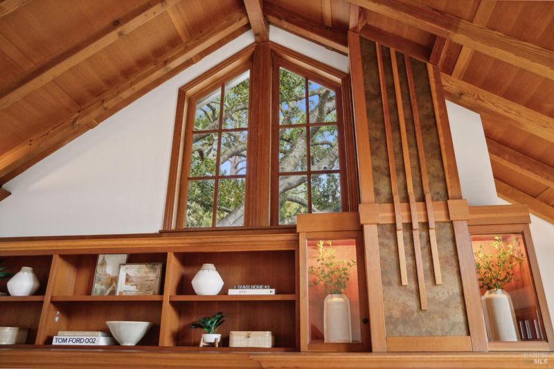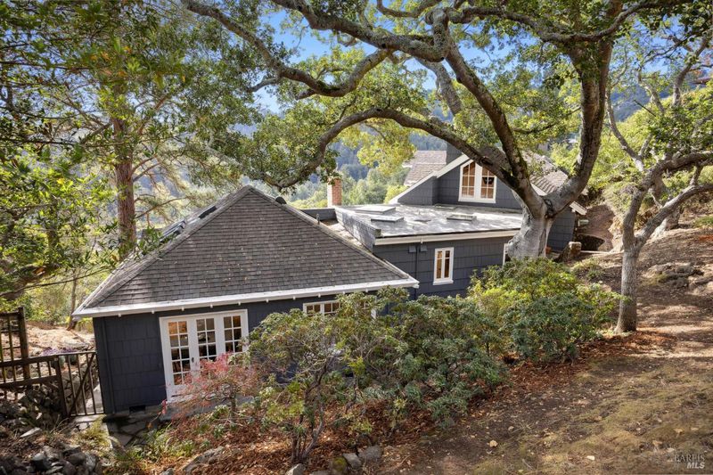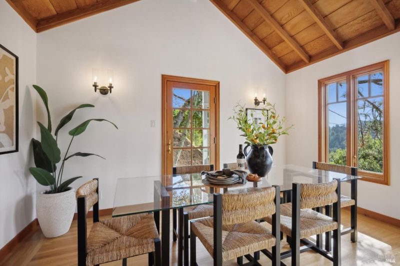 Located in the most desirable sun filled location of spectacular Middle Ridge neighborhood, this dramatic and modernized Craftsman home has sweeping views of San Francisco, the Bay, gorgeous hills. Lovingly expanded and owned by the same family for 49 years, this unique property exudes warmth and charm. Featuring custom vaulted exposed beam timber architecture, built-in cabinetry, a functional layout with 3 bedrooms, 4 full bathrooms, a spacious living/dining room and separate family room both with gas fireplaces. Hardwood oak floors in most rooms with new carpeting in the bedrooms. Large picture windows and multiple french doors from most room lead to inviting outdoor spaces and decks all perfect for taking in the views while relaxing or entertaining. A lower level office or guest room has a full bath and private patio is accessed by a separate entrance. With multiple nearby public Steps, Lanes & Paths, this premier location is a few minutes to downtown, Old Mill Elementary & Old Mill Park, Public Library, Dipsea steps, hiking and biking trails, Mt Tam and more. An expansive backyard features gorgeous mature trees and plantings, a one car garage, and plenty of storage, This home truly is Mill Valley Living at its best.