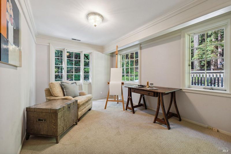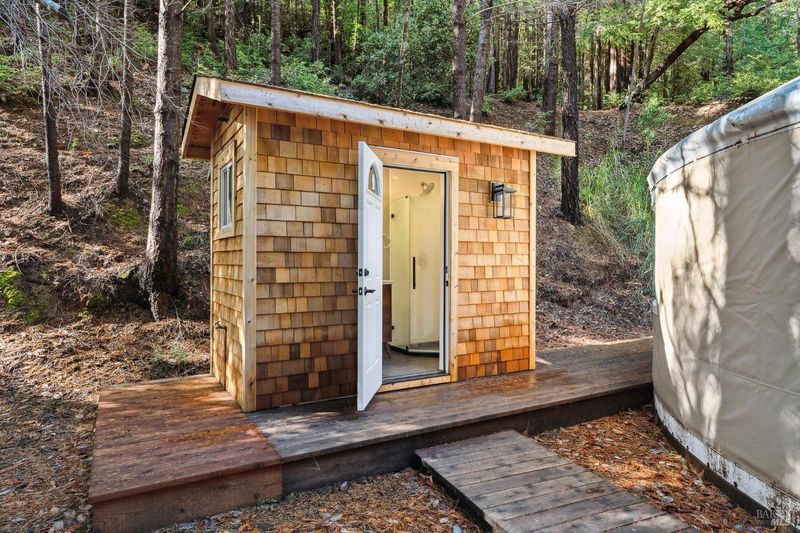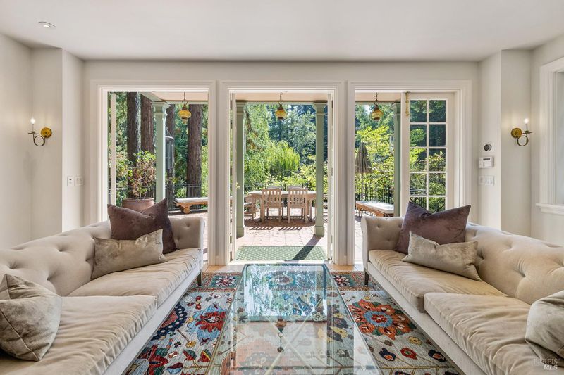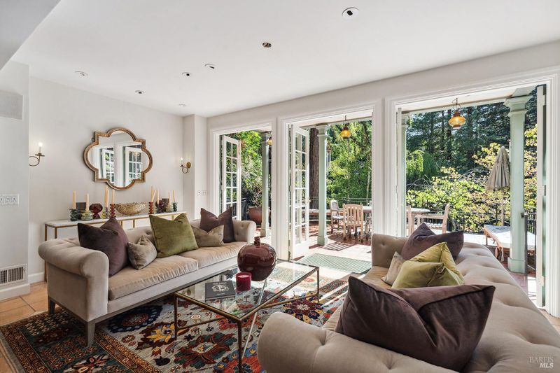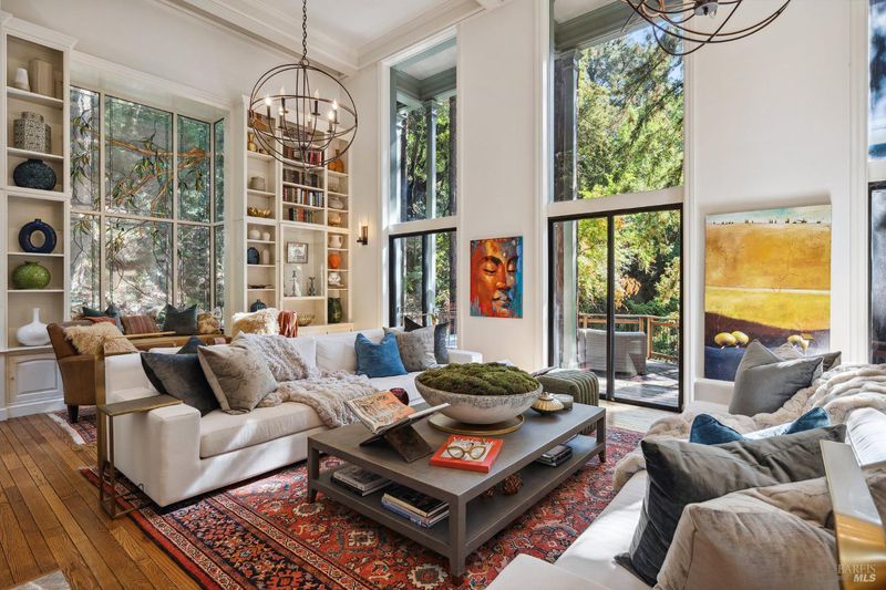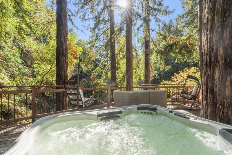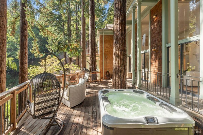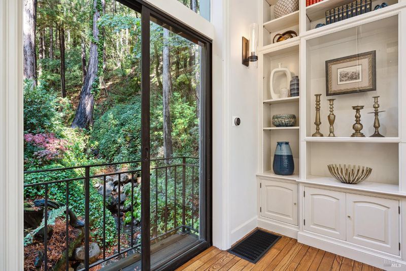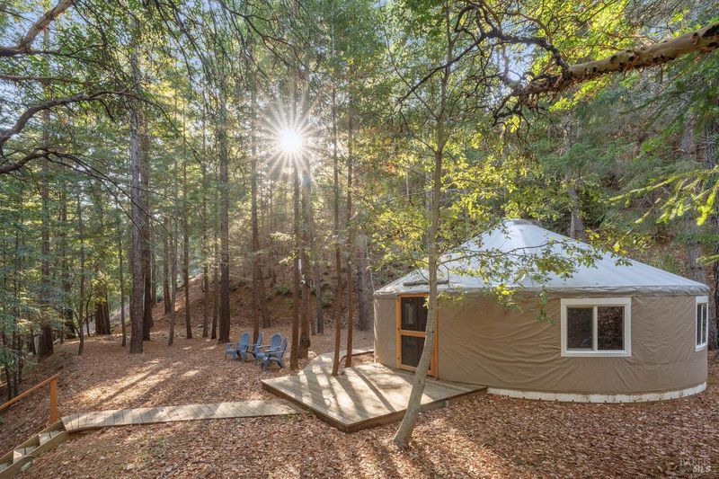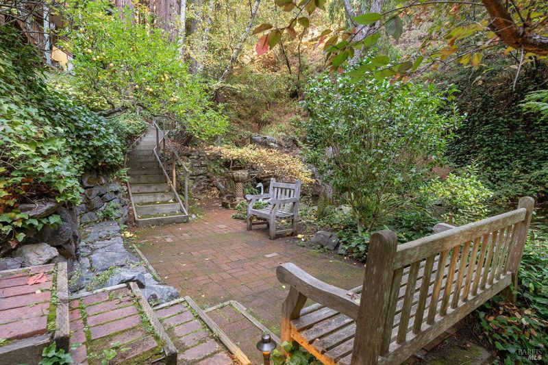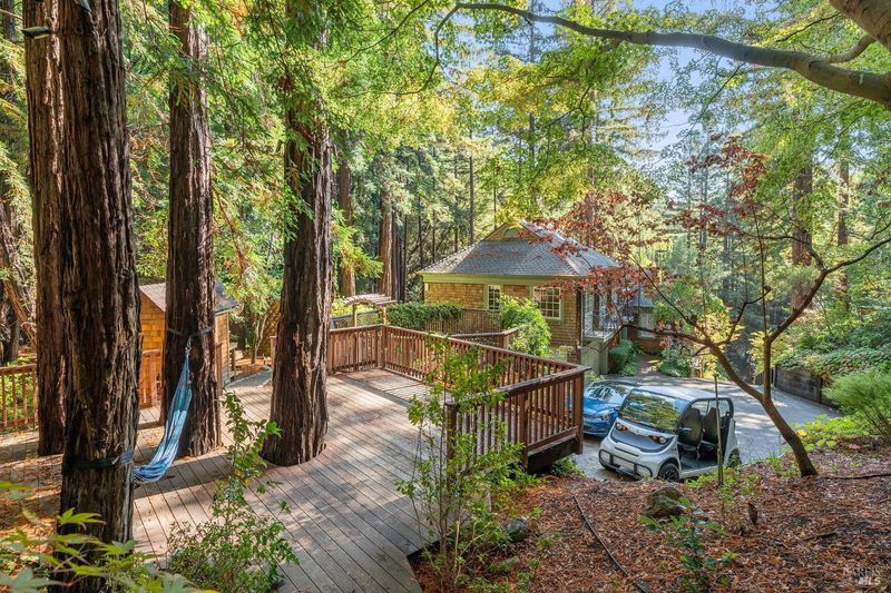 Nestled within the heart of an awe-inspiring Redwood canyon, where a natural waterfall graces the landscape, this extraordinary residence spans 3.4 acres and is a symphony of craftsmanship and the essence of the ultimate Mill Valley experience. The main home is a 4-bedroom, 3-bathroom sanctuary, complemented by an attached ADU and newly installed yurt with full bathroom. The home itself is a testament to architectural wonder - it boasts soaring vaulted ceilings, stained glass windows that cast kaleidoscopic hues, and a 15th Century Venetian carved marble fireplace that stands as a timeless centerpiece. The landscaping has undergone extensive renovations with thoughtful touches including dramatic up lighting, extended exterior WiFi throughout the property, and serene hardscape moments. Enjoy the recently installed hot tub overlooking nature, custom raised garden beds, private gazebo, and multiple outdoor decks among the trees. This property is nothing short of an oasis, a private retreat that evokes the tranquility of a mountain haven. Located near thriving downtown where you'll enjoy acclaimed schools, a plethora of hiking trails, and a lively scene of shops & restaurants. Words and photos cannot fully describe the magic of this special property. You must come see it in person.